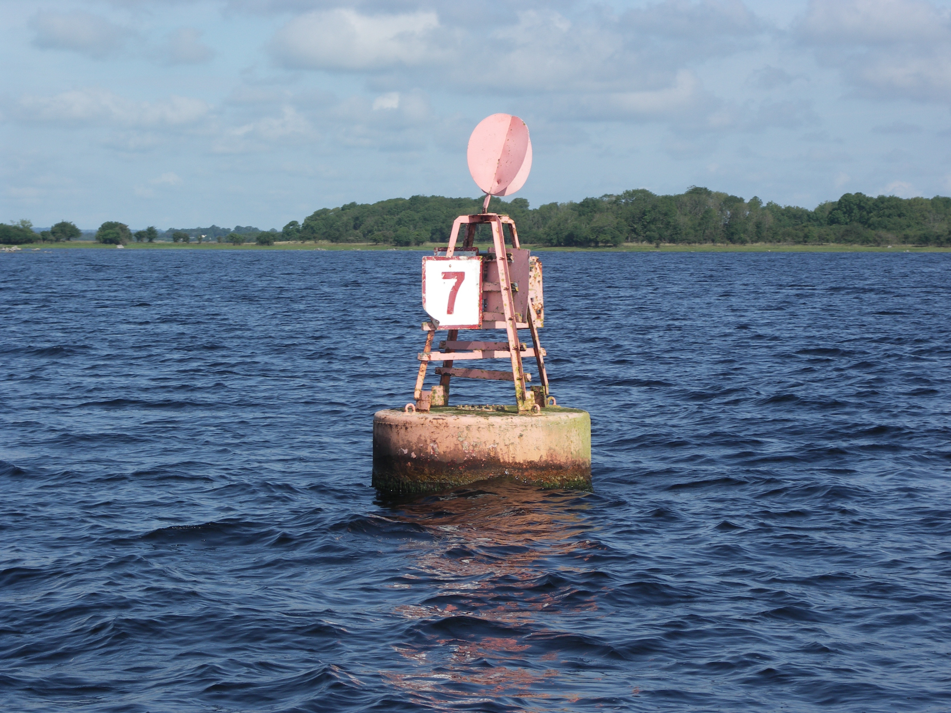 Looking back at big red buoy No 7 and big red buoy No 8. Lough Ree.