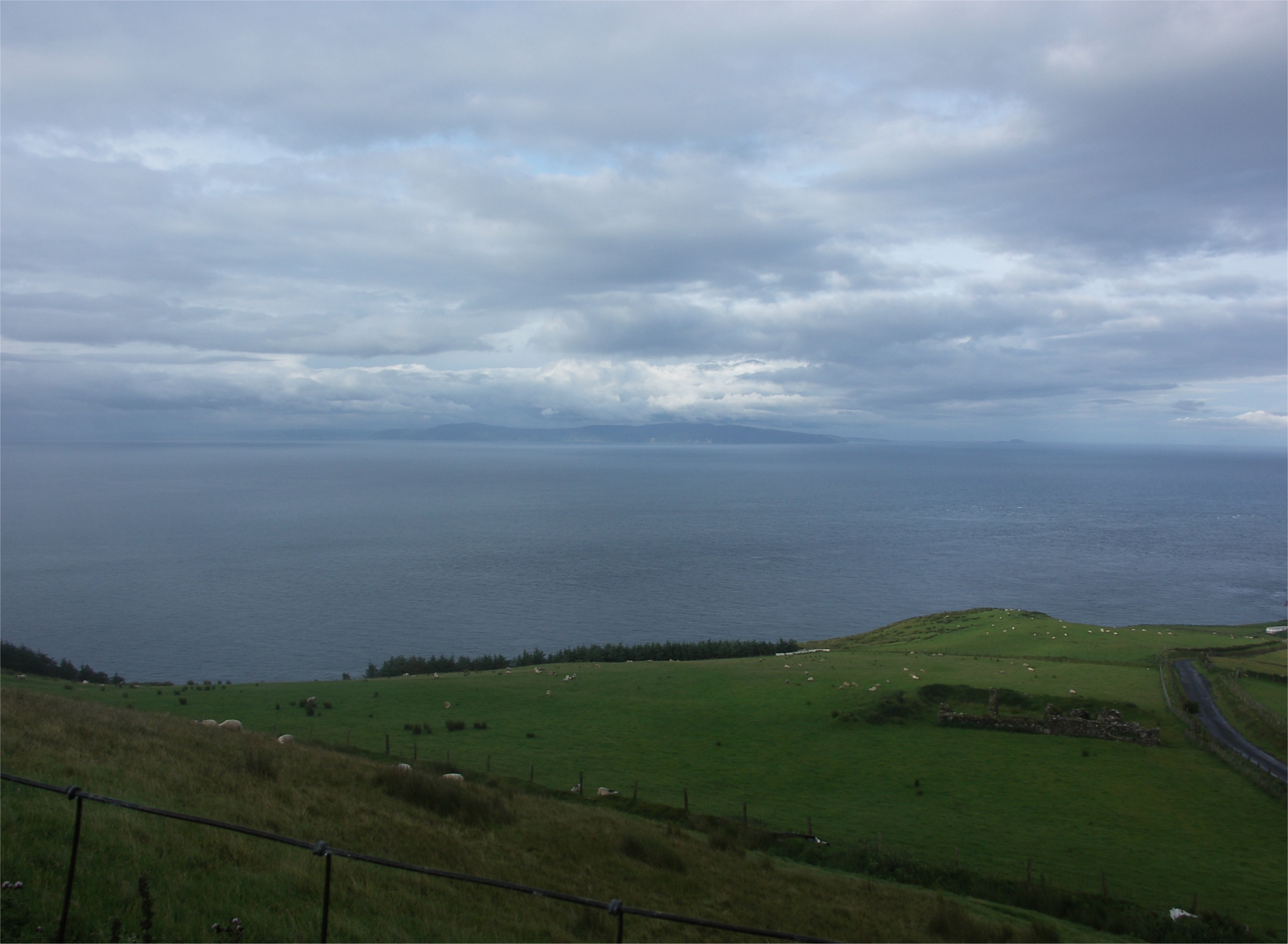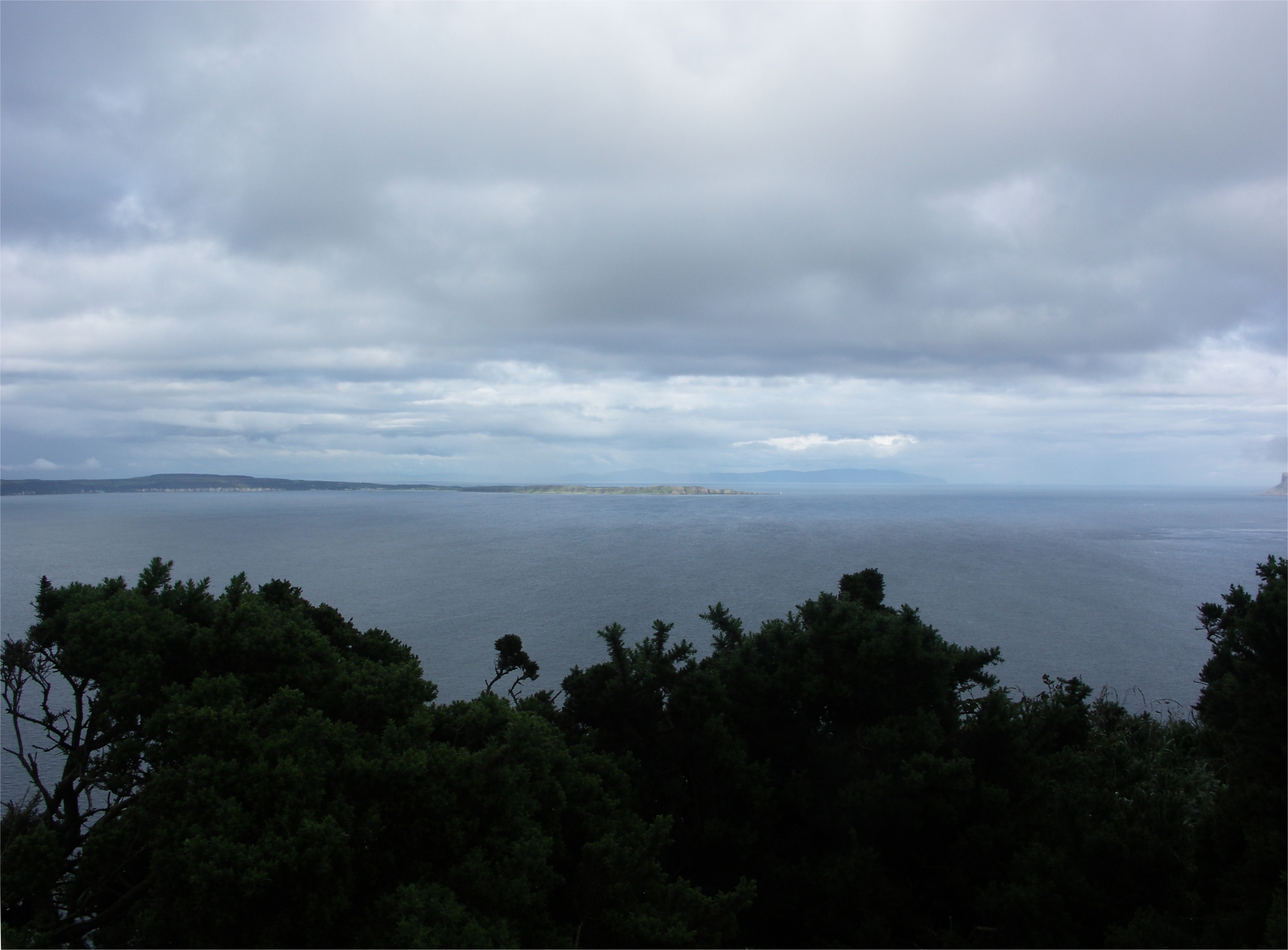 Antrim Coast. Ahead is Rathlin Island and beyond the Mull Of Kintyre.