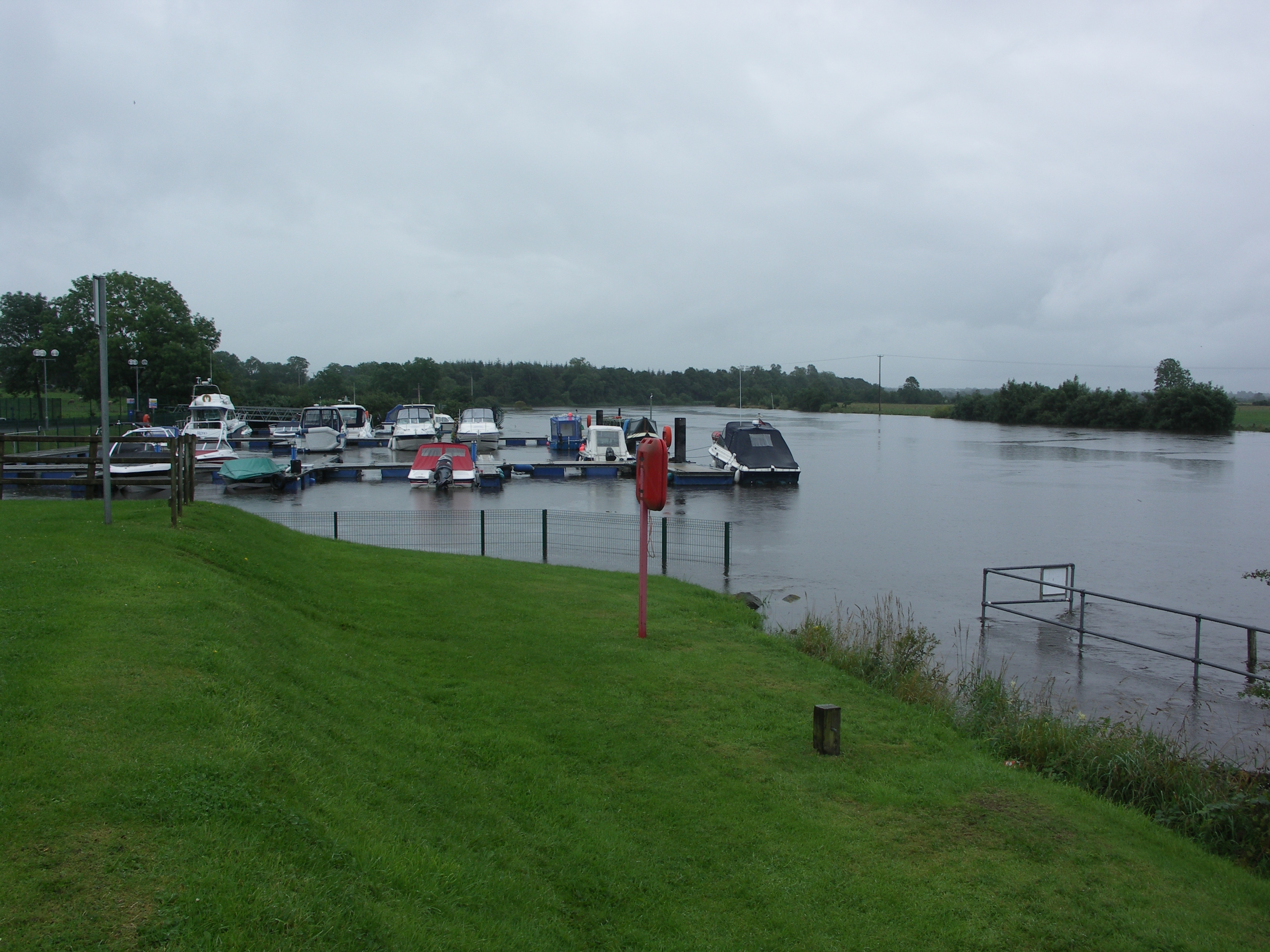 Toome slipway and visitor moorings from the old railway bridge abutments. Lower