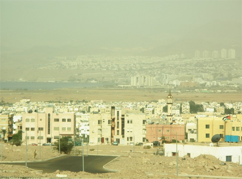 Aqaba, Jordan. Eilat, Israel in the distance.