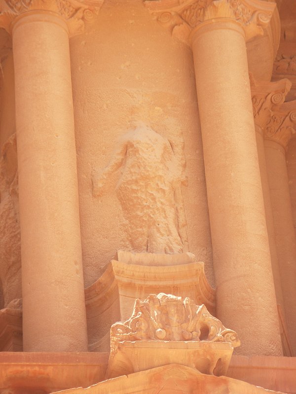 Eroded statue of the Greek goddess Tyche in the tholos (tubular bit at the top).