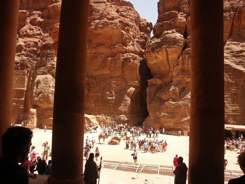 View towards the entrance of The Siq into the Outer Siq from The Treasury.
