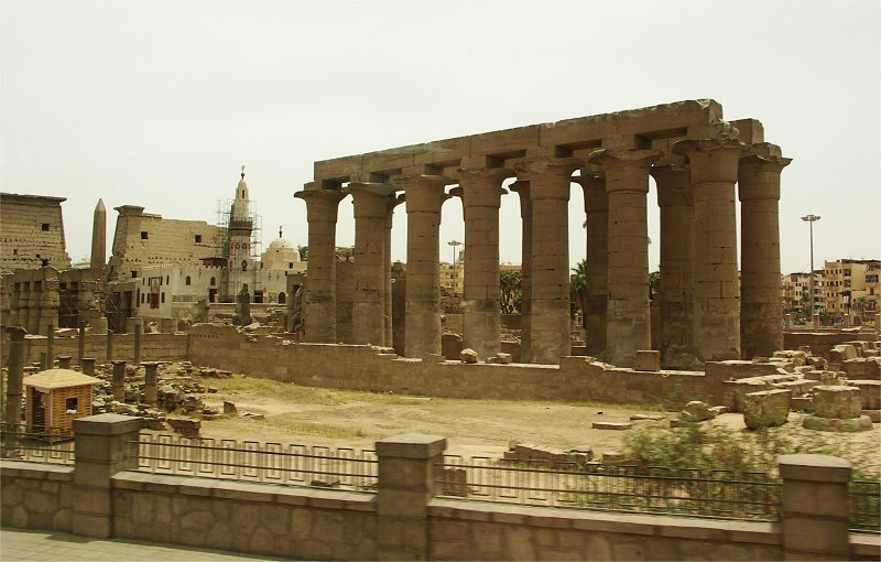 The east side of Great Sun Court of Amenhotep III’s temple. Luxor temple