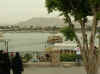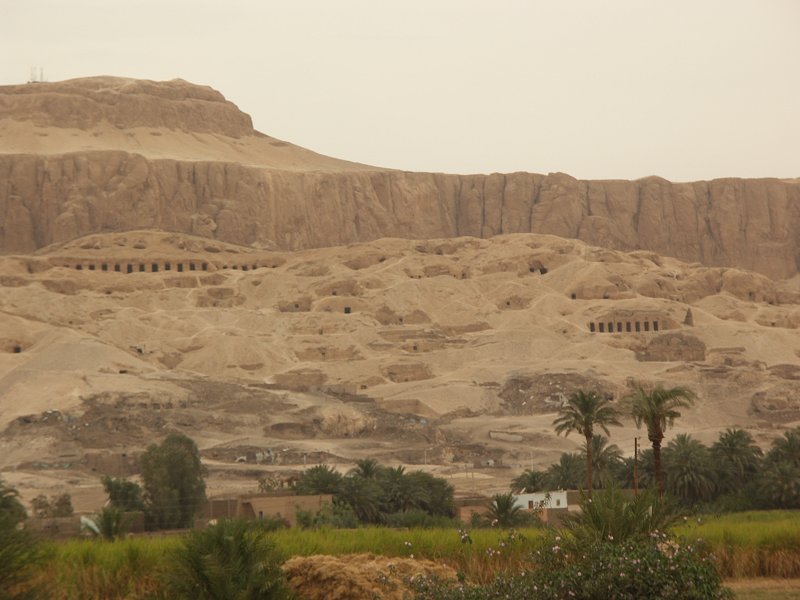 The Mortuary Temples of Mentuhotep II (to the left) and Hatshepsut (centre) on the West Bank at Luxor.