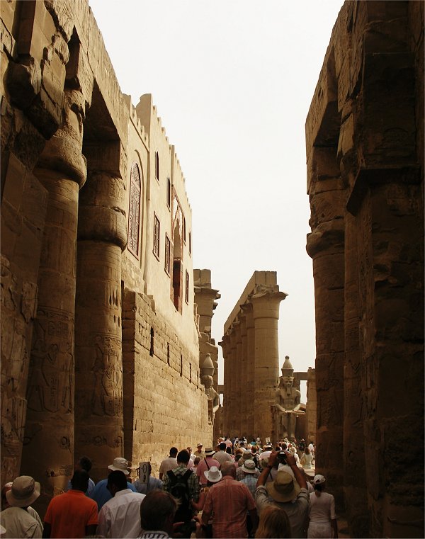 Entering the courtyard of Ramesses II. Luxor temple complex.