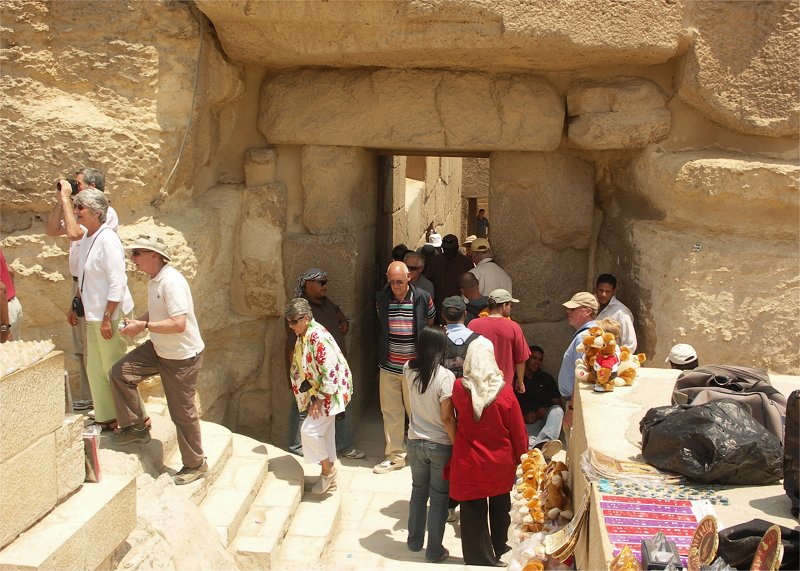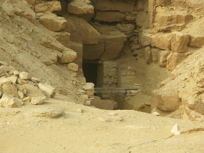 Khufu's great pyramid. The original descending entrance corridor entrance.