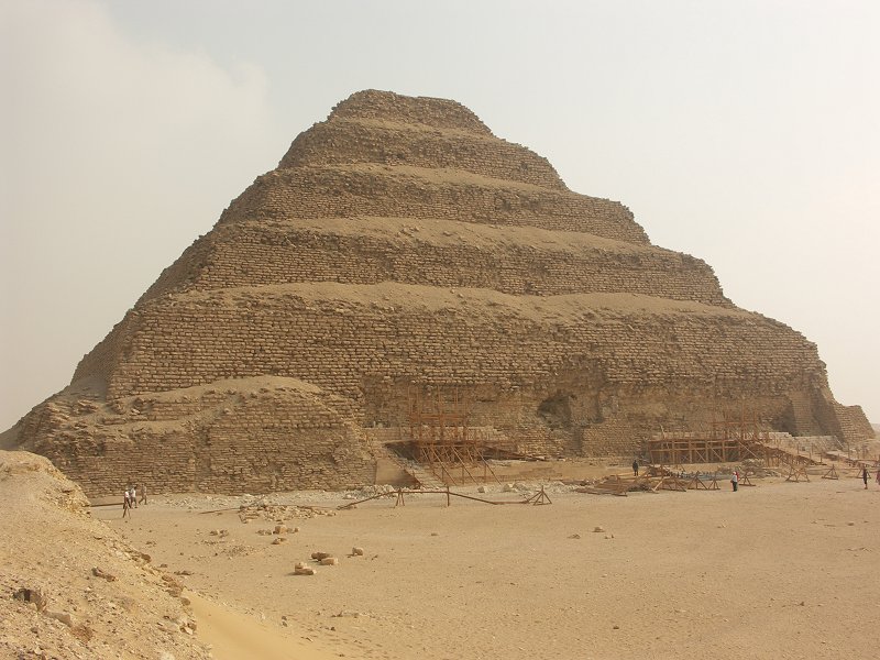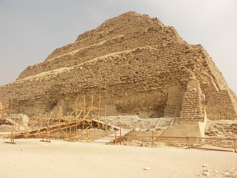 Djoser's stepped pyramid. Works underway to stabilise the pyramid.