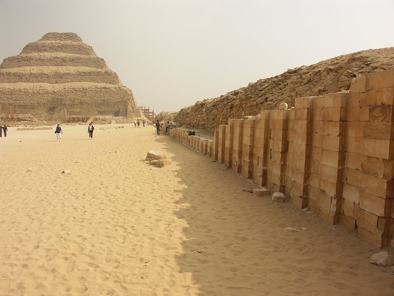 Djoser's stepped pyramid, courtyard and courtyard wall. Djoser's stepped pyramid