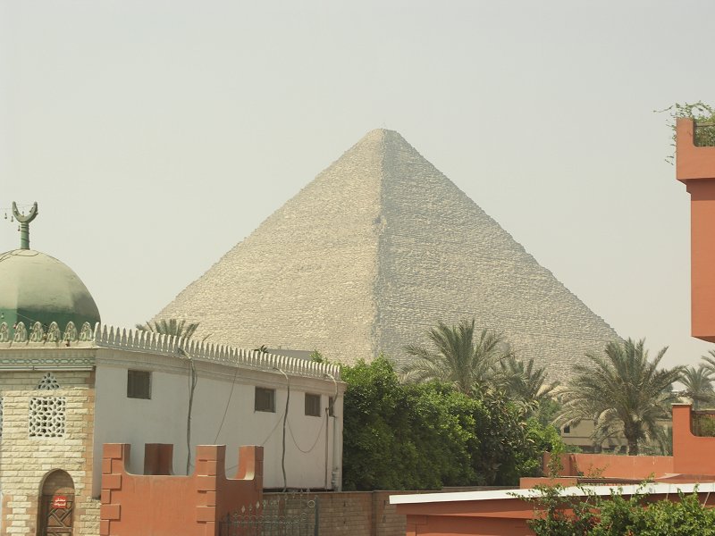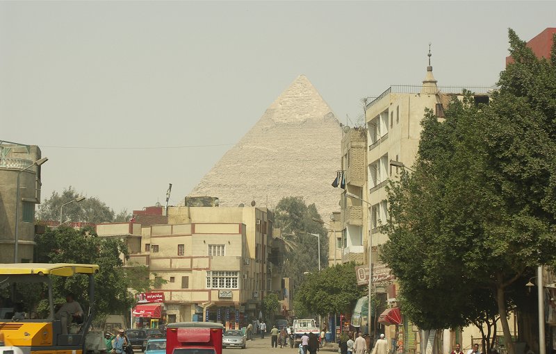 First view of the pyramid of Khafre from Giza town.