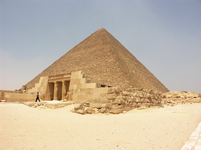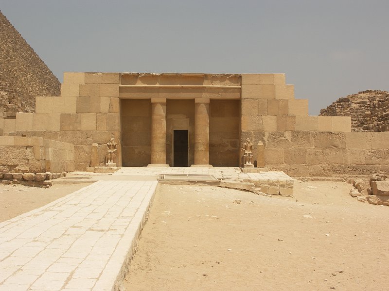 The mortuary temple of Queens Pyramid G1c, with Khufu's pyramid behind.