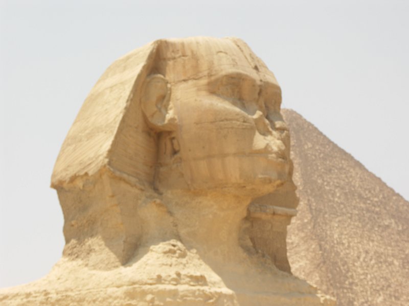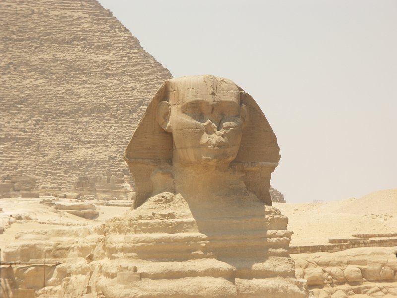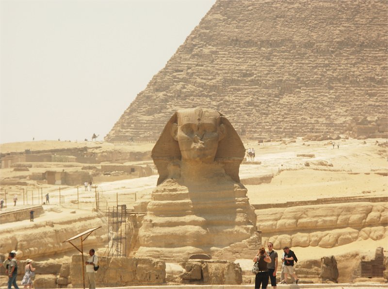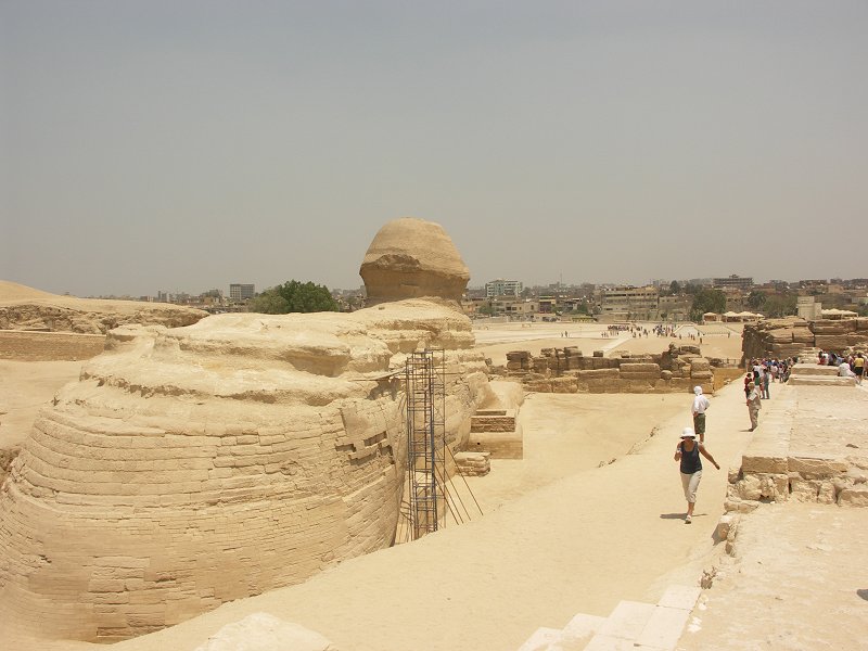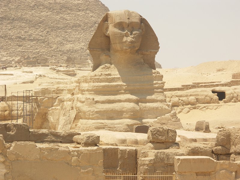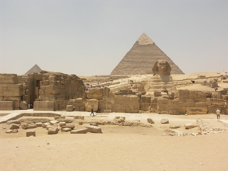 Khafre's funerary temple, the Great Sphinx, with Khafre's pyramid in the