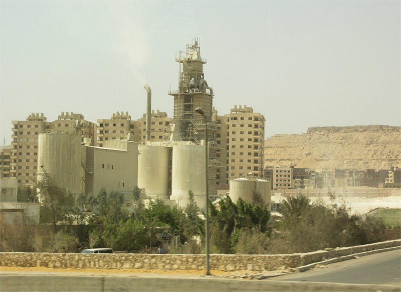 The expansion of suburban Cairo. Cement plant built on site.