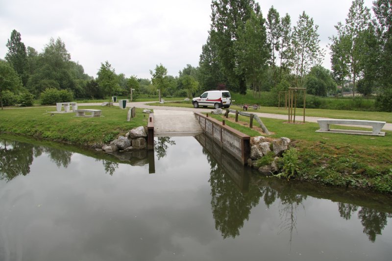 Park, moorings and slipway at Blangy Tronville. The Somme Canal.