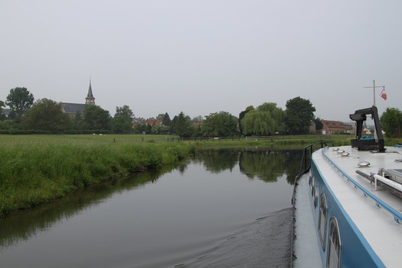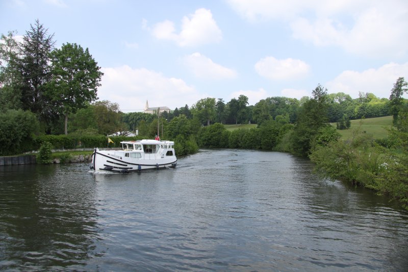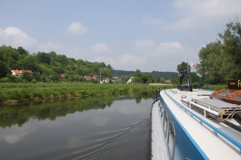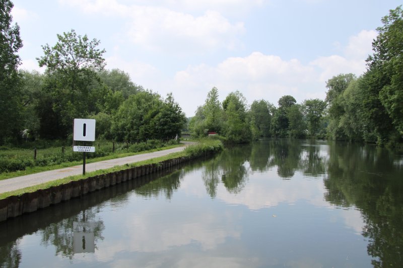 08:45 start from Amiens. Lunch stop above Lock No21 12:40 to 13:50. 16:15 exit lock No 23 Pont Remy. Winded at Abbeville weir (17:25). Back upstream and stop for the night on the deep piled moorings at Epagne Epagnette, in the company or the narrowboat "Wandering Snail" at 18:30.
