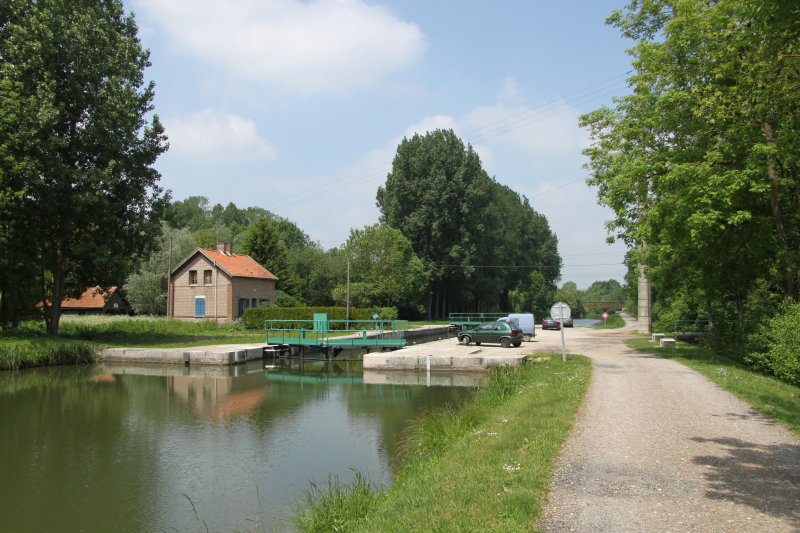 Lock No22 Long, lock cut goes off to the right. Somme Canal.