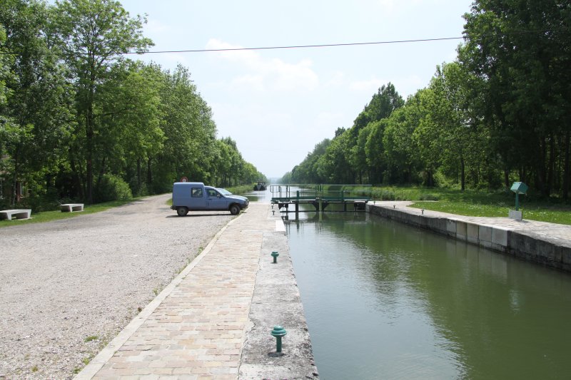 Lock No18 Montières. The first of the double chamber locks. The centre gates
