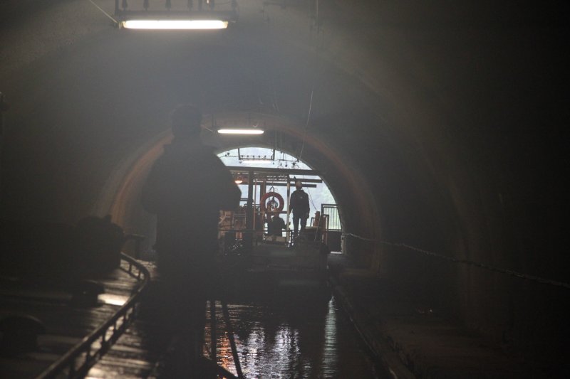 Nearly out. Riqueval Tunnel. Canal de St Quentin.