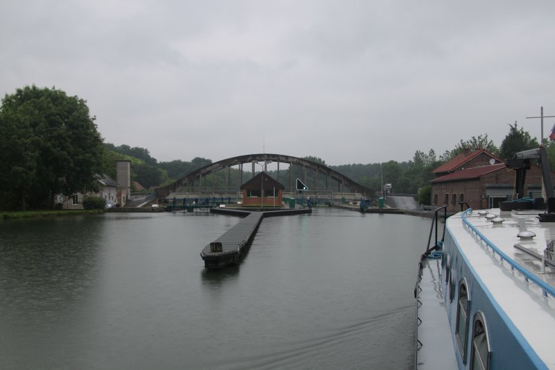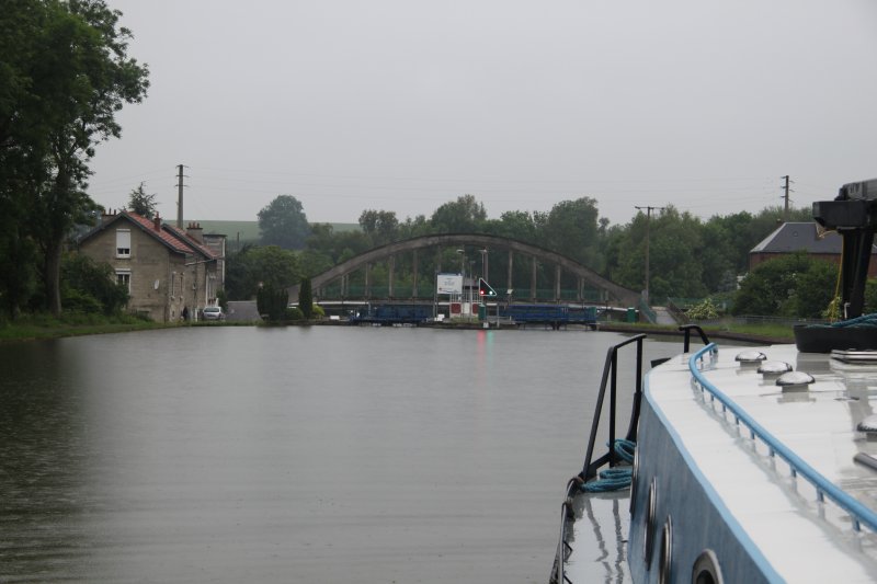 We are off, the only boat. Riqueval Portal. Summit pound. Canal de St Quentin.