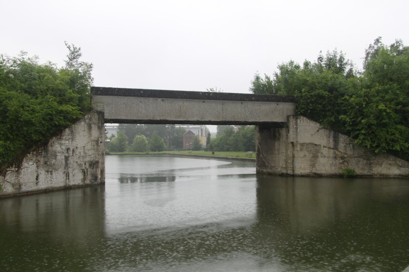 Lock No8 Saint-Waast. Note aqueduct incorporated into chamber approach walls. Canal de St Quentin.
