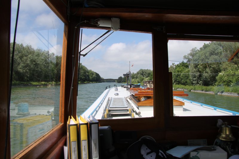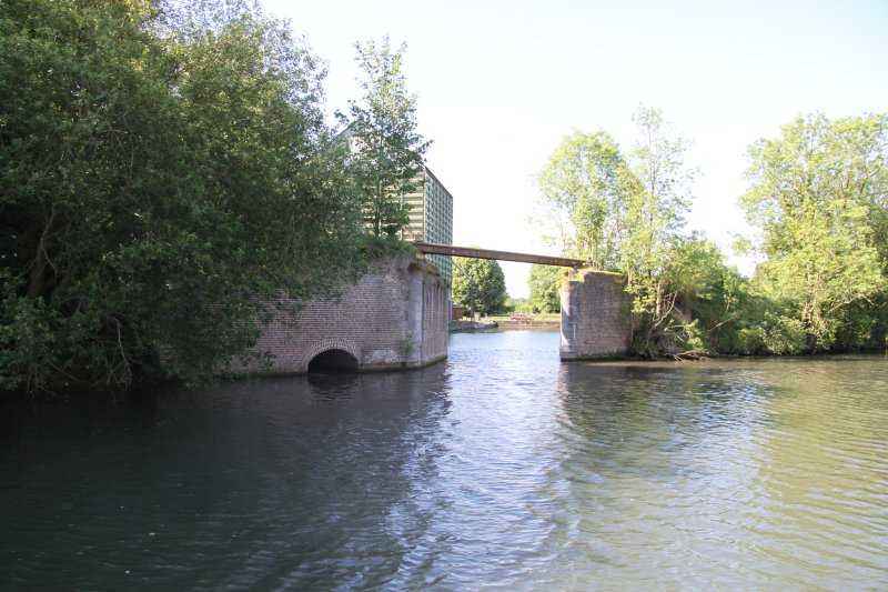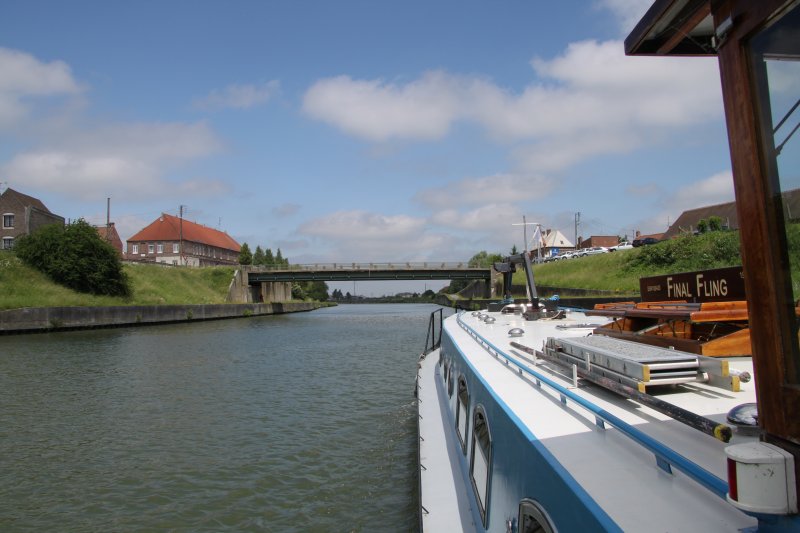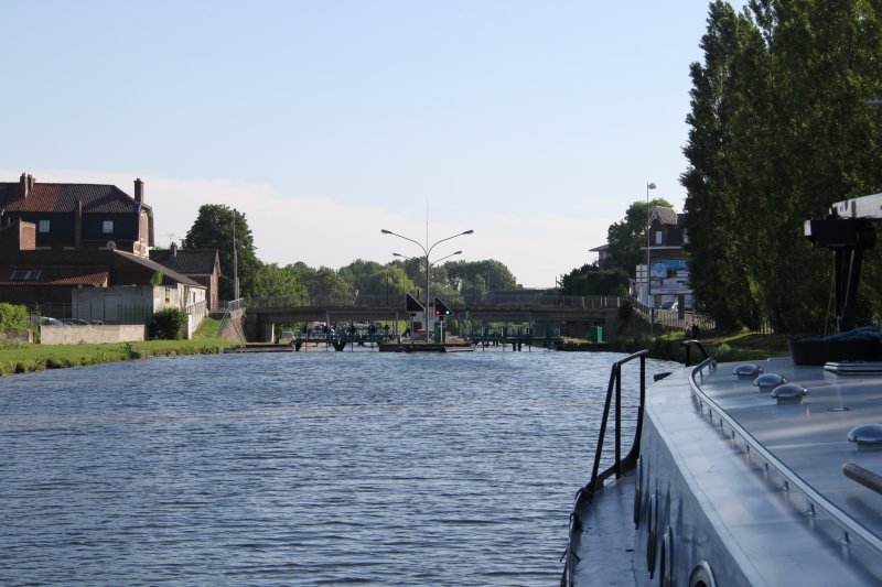 Wheelhouse view of Abbaye du Verger Bridge at Oisy-le-Verger. Dunkerque - Escaut
