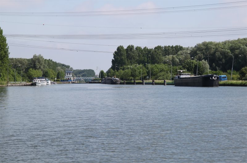 Looking right down to Pont Malin Lock, on the up-rated Escaut.