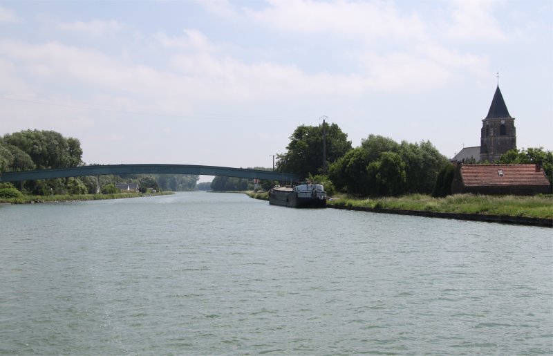Looking back at Hem-Lenglet village and footbridge. Dunkerque - Escaut Waterway.