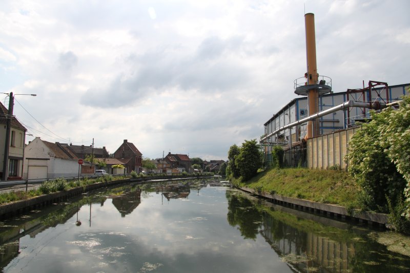 Hem-Lenglet village and footbridge. Dunkerque - Escaut Waterway.