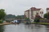 Running out of time we had to have a good days boating, preferring to exit the Scarpe Superior that night. 07:40 start, arriving at Biache St Vaast Lock as it should have turned on at 08:00. The lock was still off, (we eventually "found" the traffic lights amongst the undergrowth!) There was a VNF bod about so he came down, looked at the lights, then turned the lock on with a "super" zapper. Fampoux Lock also had no lights working, so a VNF bod set the lock in motion. So we carried on up the Scarpe, no one about apart from a couple of Dutch Tjalks, near the top. They warned us the top lock St Nicholas was shut (we knew) and that it was "boring" and very shallow above St Laurent Blangy lock (second from the end). We arrived at St Laurent Blangy to find that the visitor moorings were taken by mostly Brit boats, they seemed to be long term moored. Once through St Laurent Blangy Lock the depth shallowed, once above the nearby winding point. There were some derelict wharves, but the clear water showed that it was shallow, each side of a central channel. We got up to St Nicholas Lock (12:35), but had to reverse a good few hundred metres, back past the mill and under a road bridge, until we could do a rather mud stirring wind at the start of the old wharf wides. So now after a timing assessment, we decided to "go for it" at get through Corbehem Lock that night. Things went well, with no one about and no mishaps. We arrived at Corbehem Lock with precious time to spare, fortunately the ascending china clay barge got up in time for us to set the lock before it shut off at 18:00. We moored up, just below the lock behind the two Dutch Tjalks. We had a good chatter with the Dutch and ate it that night.