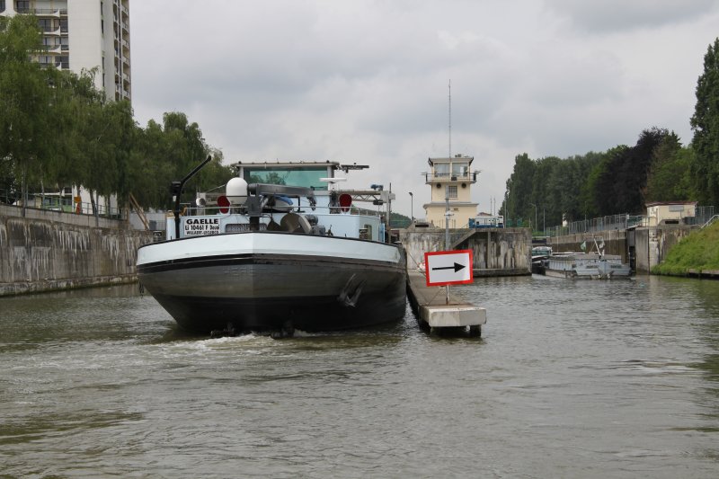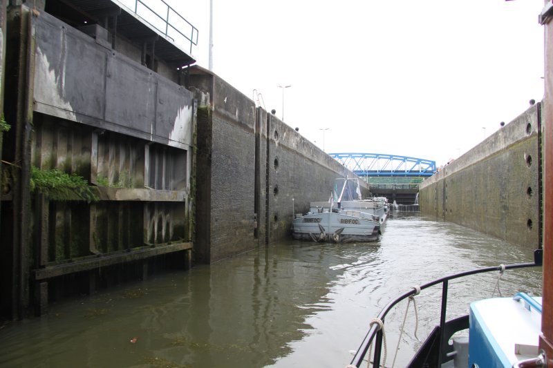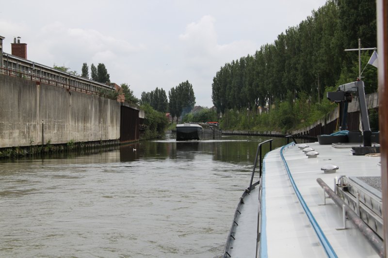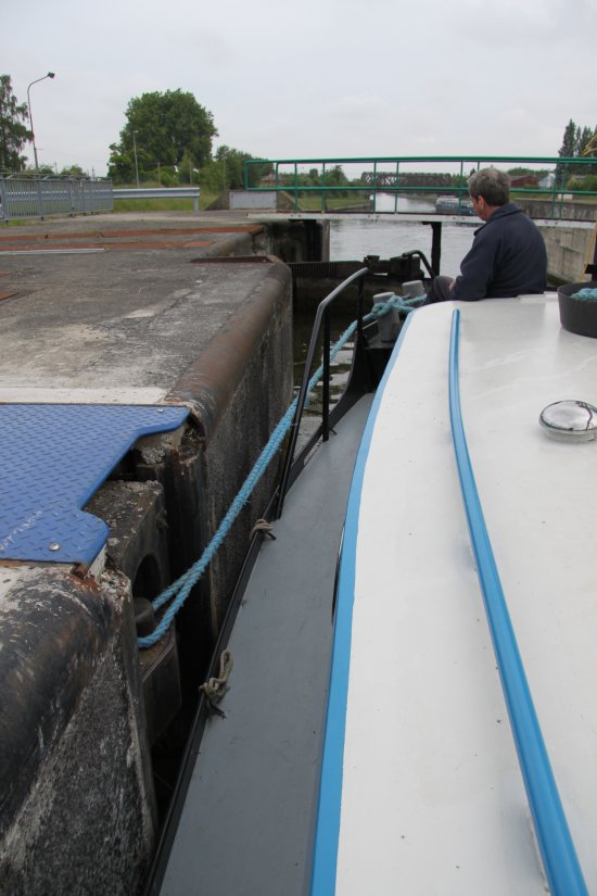 Leaving Douai Lock. Canal de la Sensée / Dunkerque - Escaut Waterway.