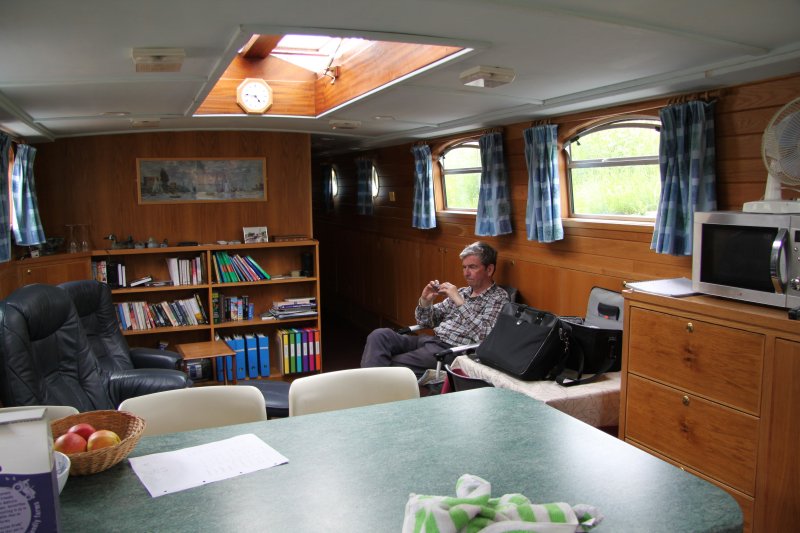09:15 departure from Corbehem, we dropped off the zapper at Corchelettes Lock and then entered the lock and proceeded back to Douai. There was a bit of confusion above Douai Locks, we had to hang about. Interesting to note that the drained lock was now back working and the other lock was drained and being worked on! So back at the moorings at 11:20, after passing a very long queue of commercials, waiting for the, now single, Douai Lock. After summoning one of the moorers at the moorings, who moved a small cruiser out of the way, we got Final Fling back on its inside mooring. Not long after making the Final Fling "bridge" out to the other moored boats, Colin Stone arrived (barge KEI) and we had a brief chat about the VAT and TRIWV debacles. JW arrived that afternoon with a new contactor for the bowthruster, Neil was ready for it and it was soon on. That night it was popular choice to go back to the "Neuf Dragons" Chinoise.