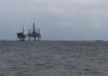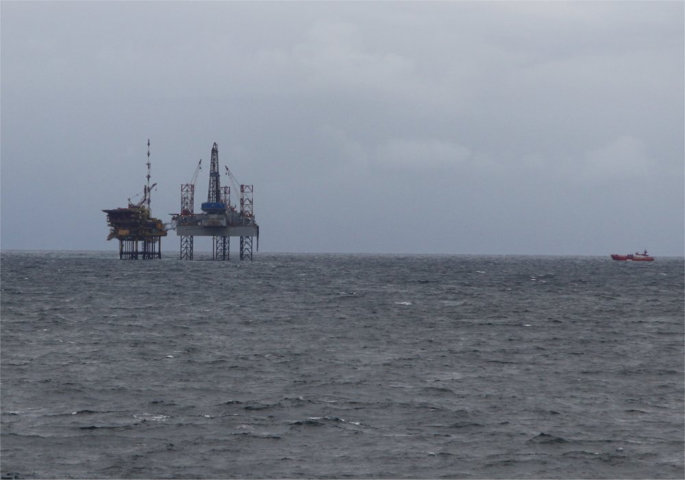 Gas platform and rig out in the North Sea.