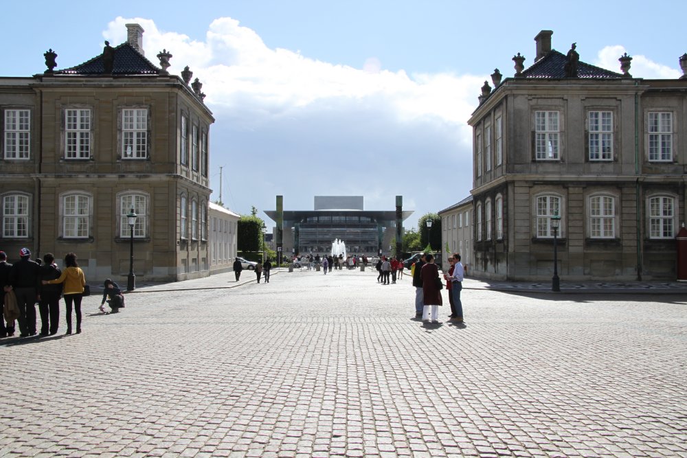The new Opera House framed in the waterside entrance to the Amalienborg Royal