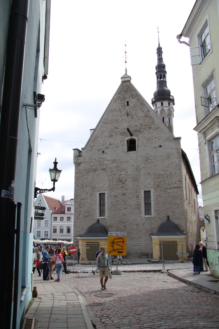 The Town Hall in Raekoja Plats. St Nicholas church spire to right. Old Town.