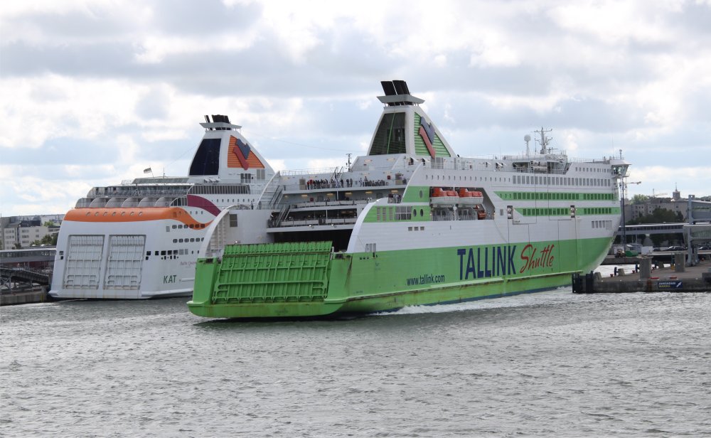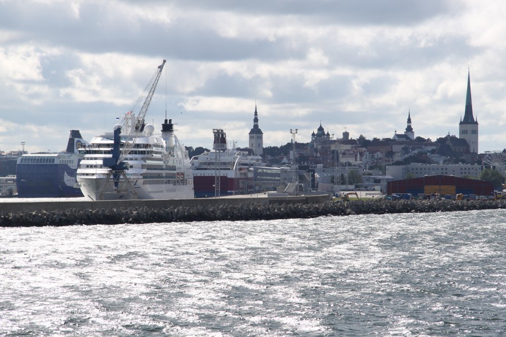 Ferry coming out astern at full tilt. Tallinn. Estonia.