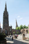 The old cathedral tower survived the Blitz. The other spire from the parish