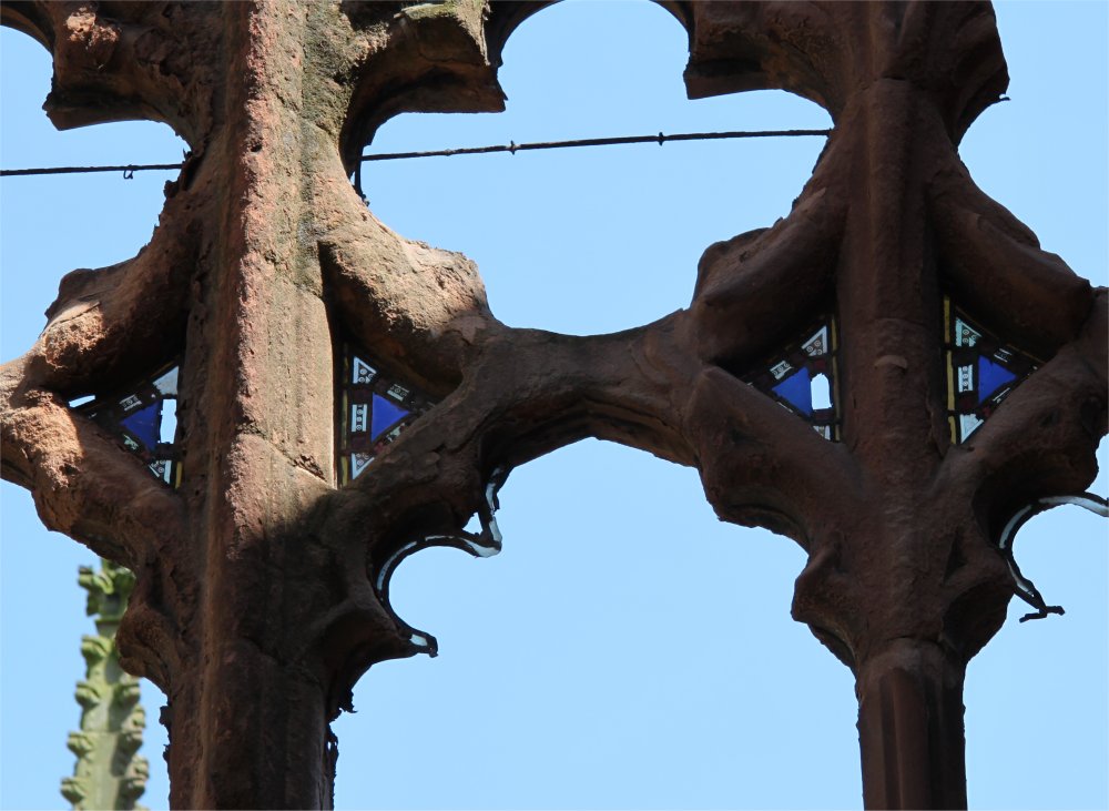 Remains of stained glass in a window of the old cathedral.