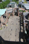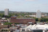 View from old cathedral tower towards Coventry Basin. Clock tower wharf