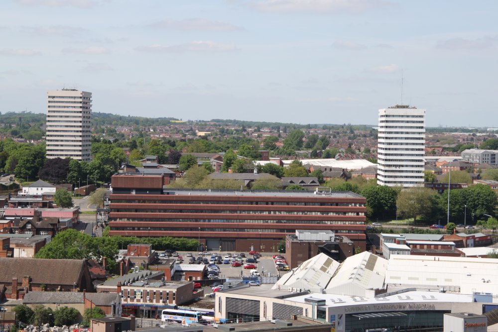 building. In the foreground is the Coventry Transport Museum which is now free.