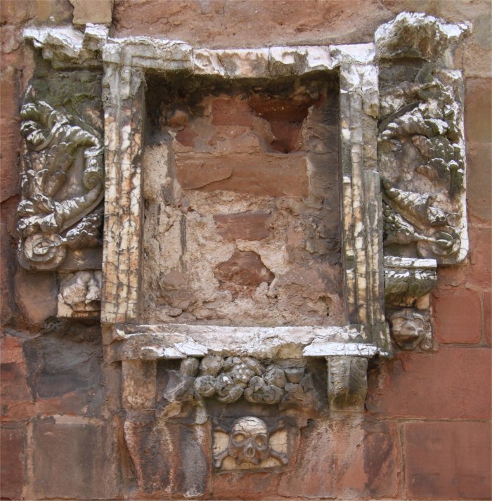 Wall relief in the old cathedral, broken up by the heat of destruction.