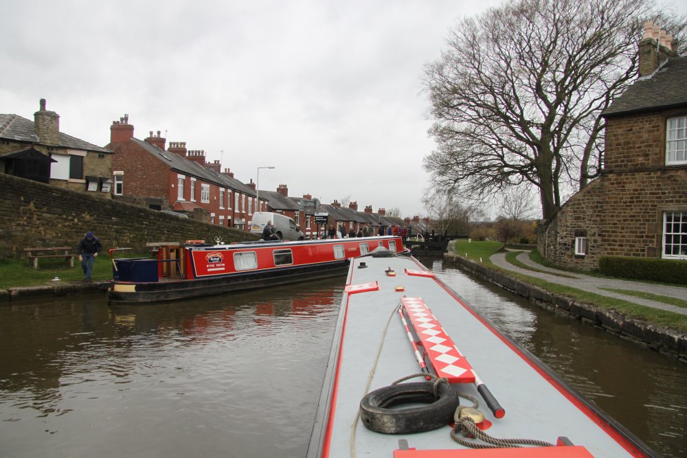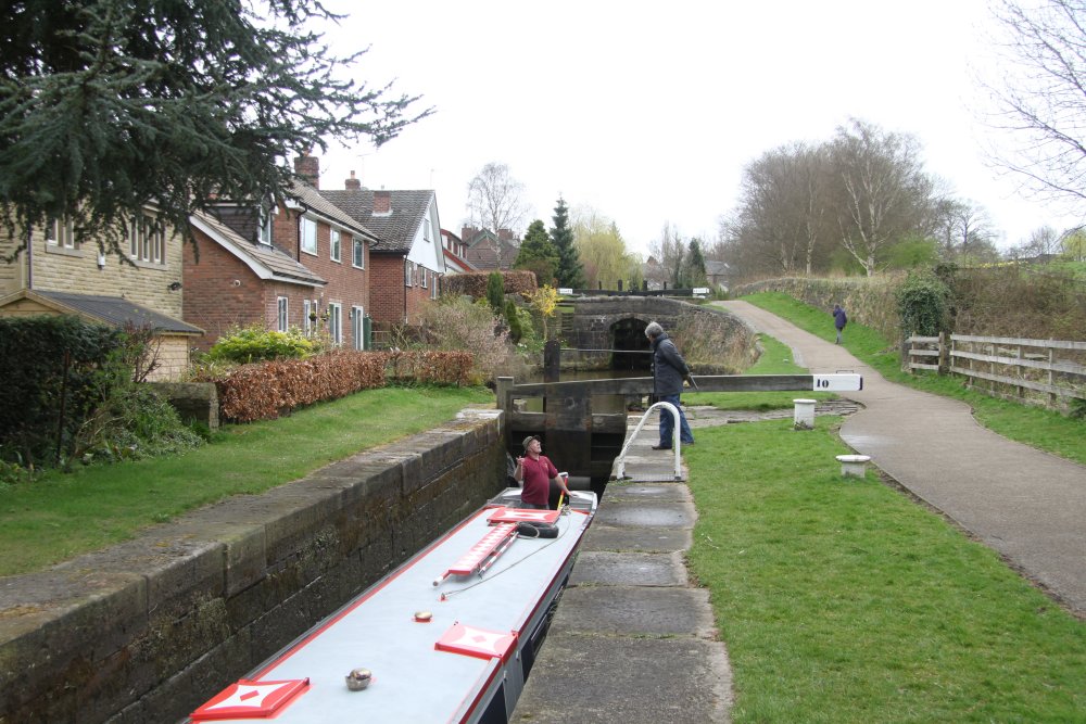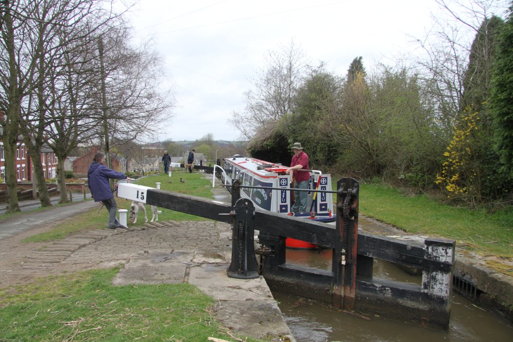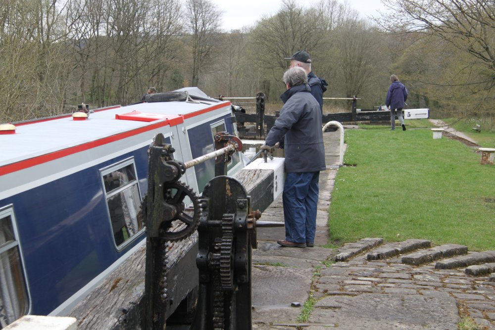 Departed a bit late at 08:15. Arrived at Marple Junction behind schedule at 10:55. new crew member MC was waiting, along with the Kitchings that had kindly come out to help us down Marple. This help was rather needed as we now had three boats in front. TK spent most of the time helping the boats in front, along with the two CaRT volunteers! We exited the bottom at 13:25 and said farewell to the Kitchings. Fortunately the other boats had stopped so we could get "stuck" into the Lower Peak Forest. No real problems, we had booked Portland Basin Marina for diesel and got there within time at 17:20. Off at 17:45. Moored up at Tesco moorings in Stalybridge at 18:25. Rather predictable visit to The Society Rooms 'Spoons.