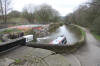 Marple Flight, Lock No 7. Looking down at Lock No 6 and collapsed wall.
