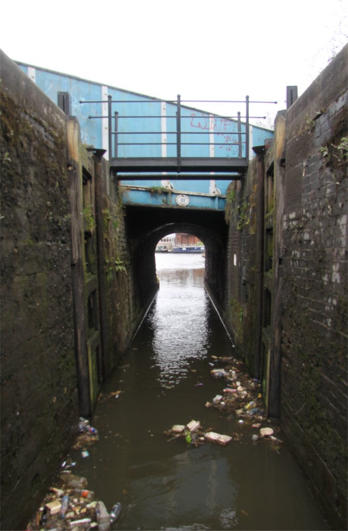 Looking back at Minerva Road Bridge No 110 and Lock No 1W.