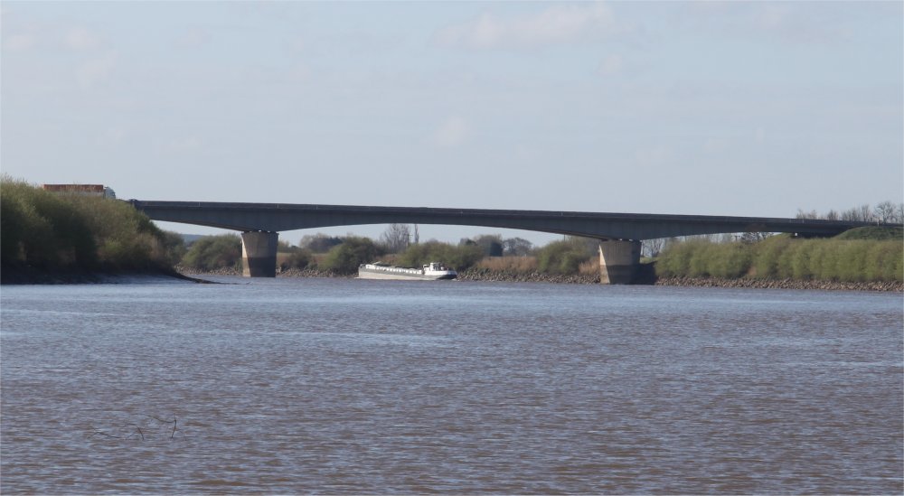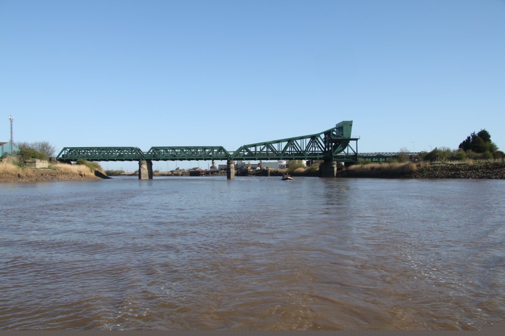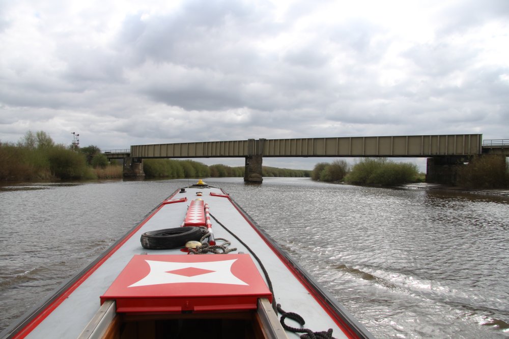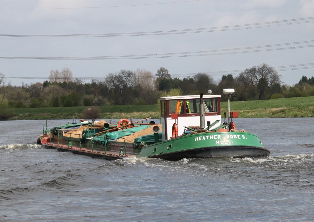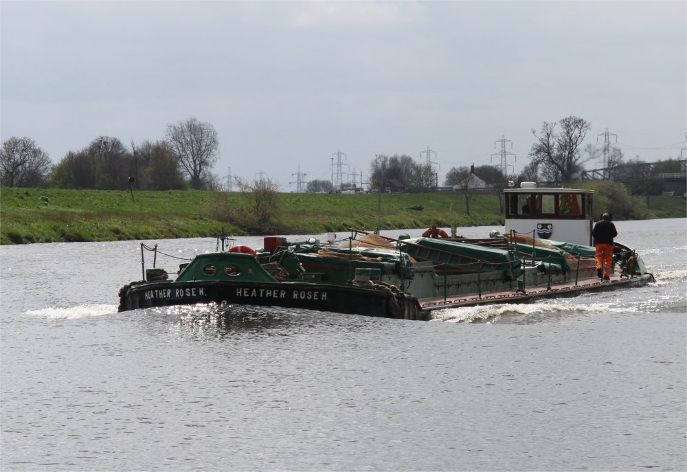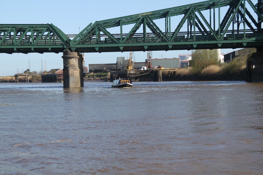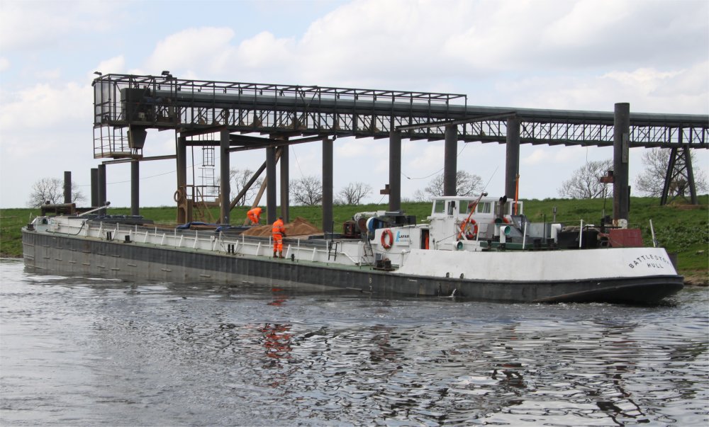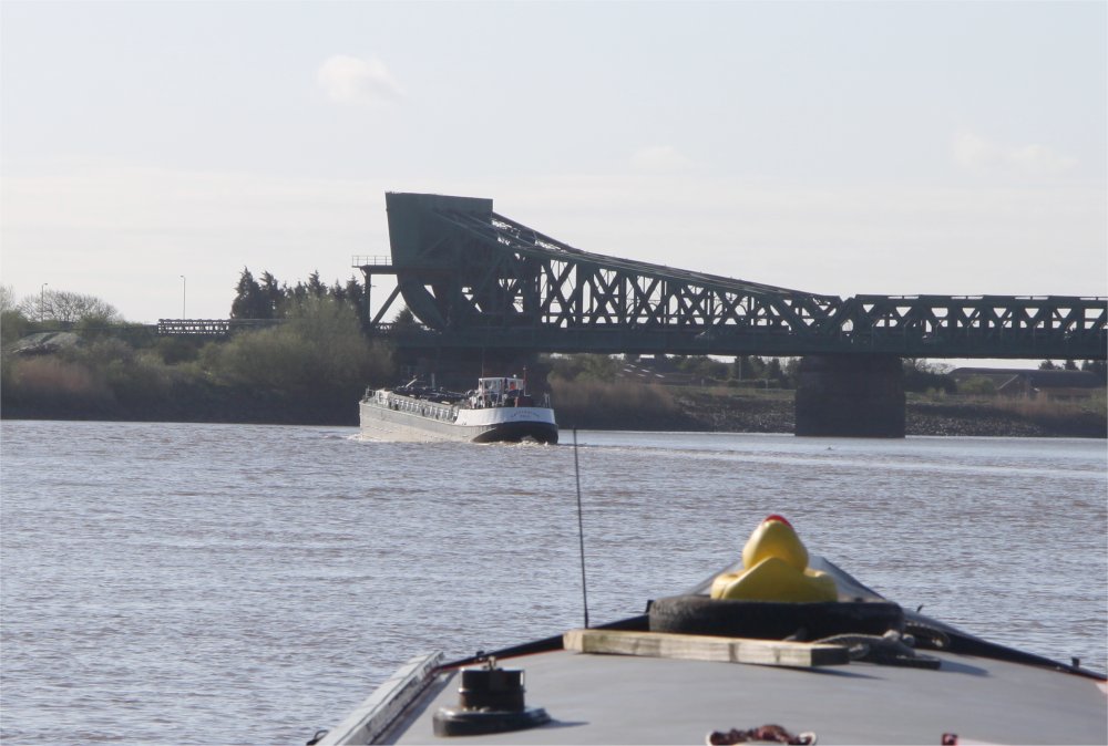 Barge Battlestone leads the way. Keadby road / rail bridge.