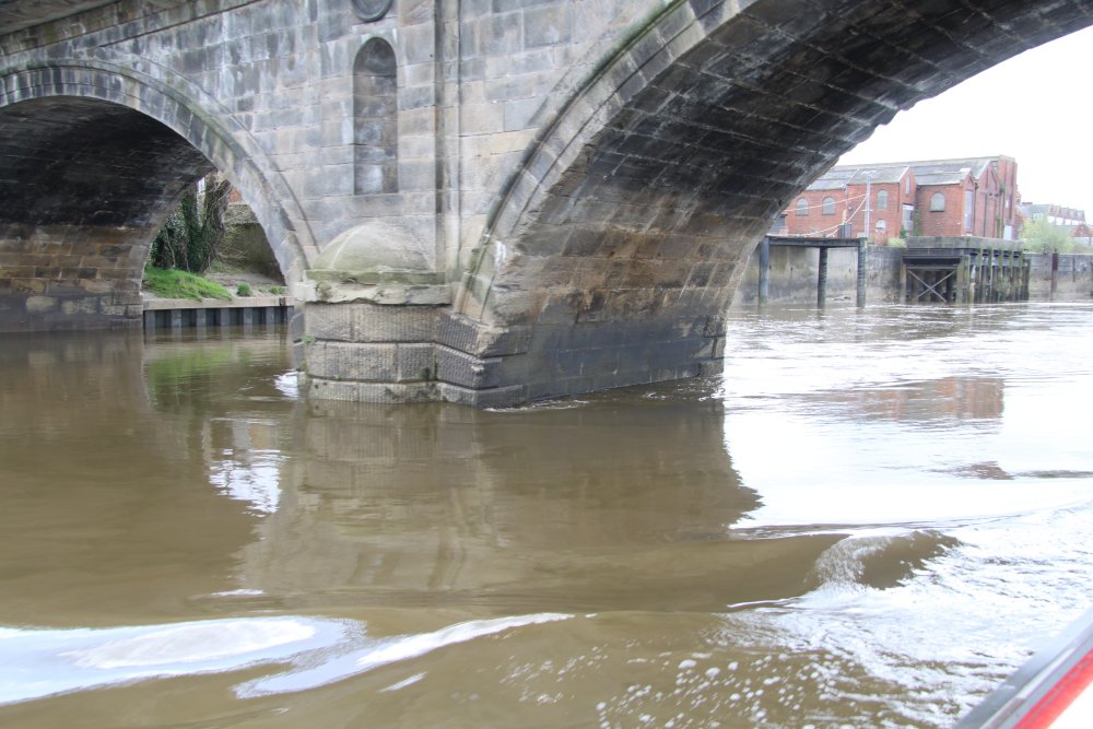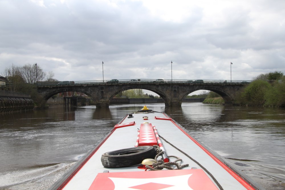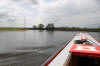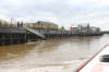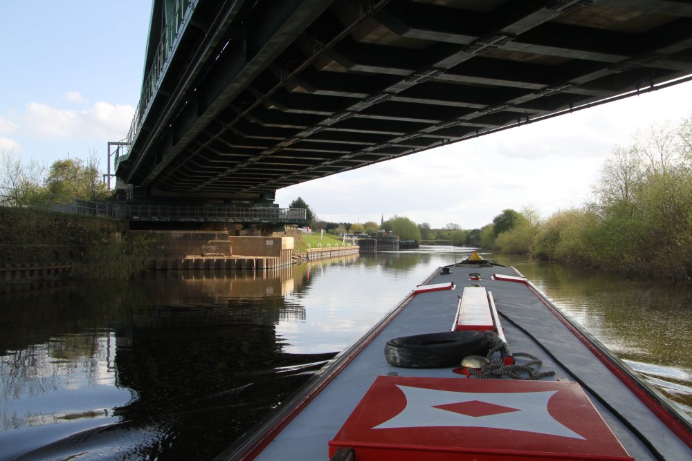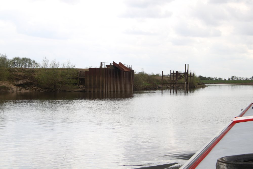 Looking back at Dunham Toll Bridge and waiting pontoon.