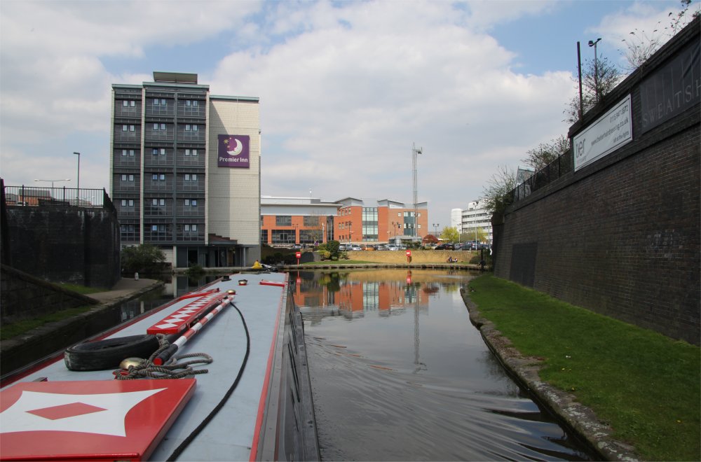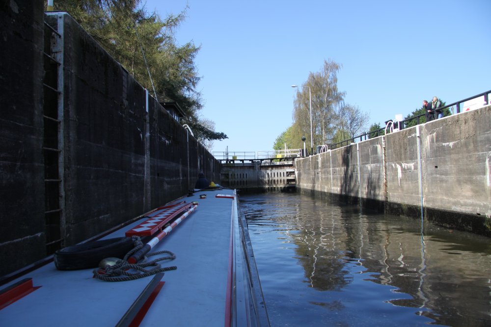 Looking back at Stoke Lock and BW Visitor Moorings.