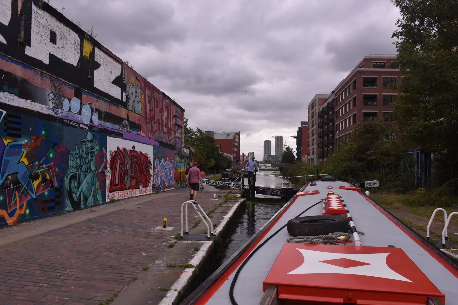 Lower Lock on the Hertford Union / Ducketts. The lower wall of graffiti has