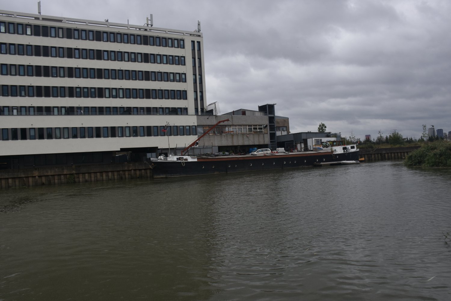 Abbey Creek / Channelsea River. Looking back at the occupied wharf, as we turn