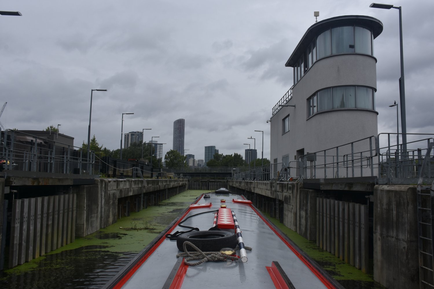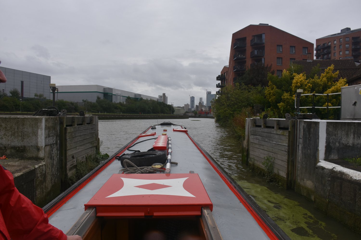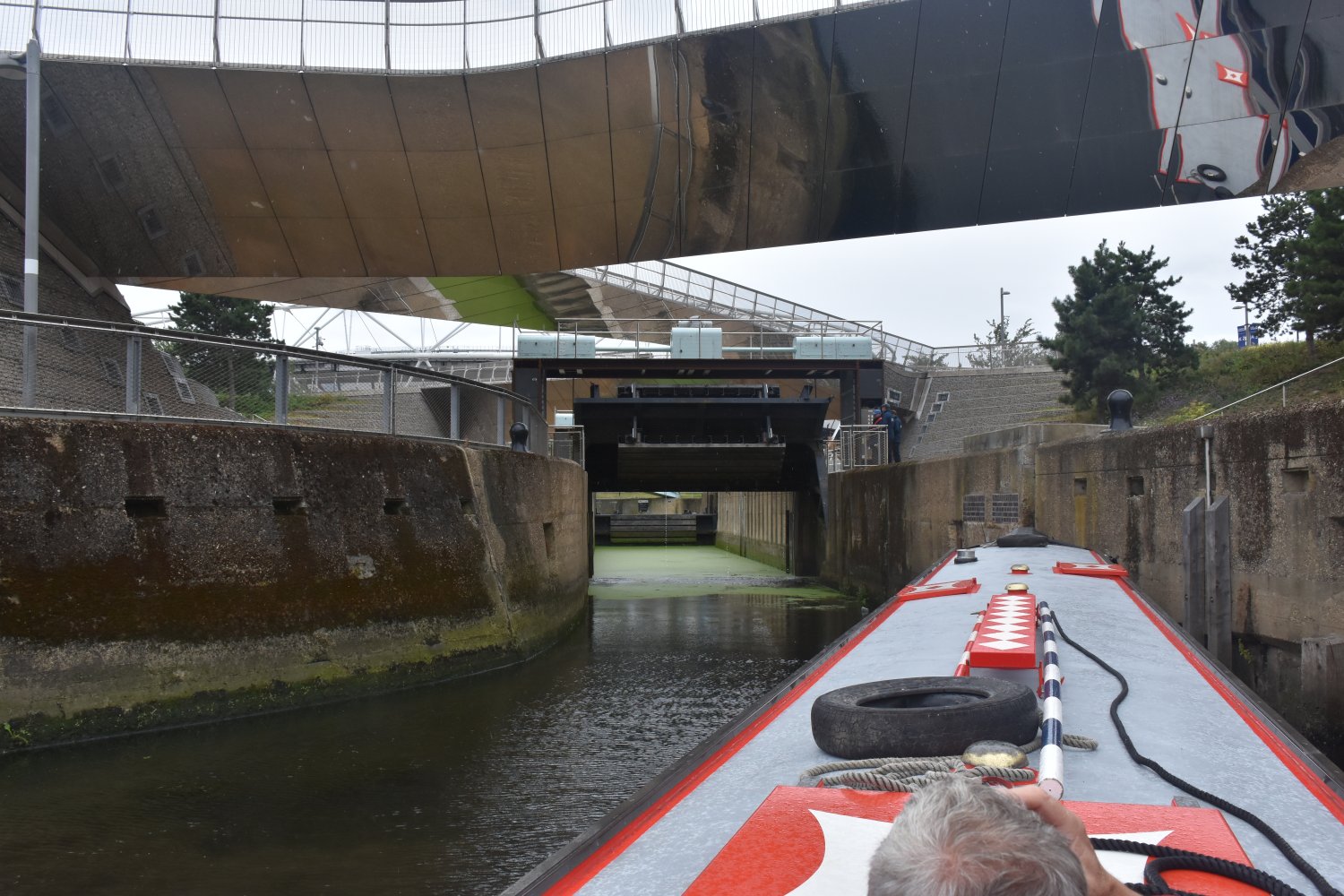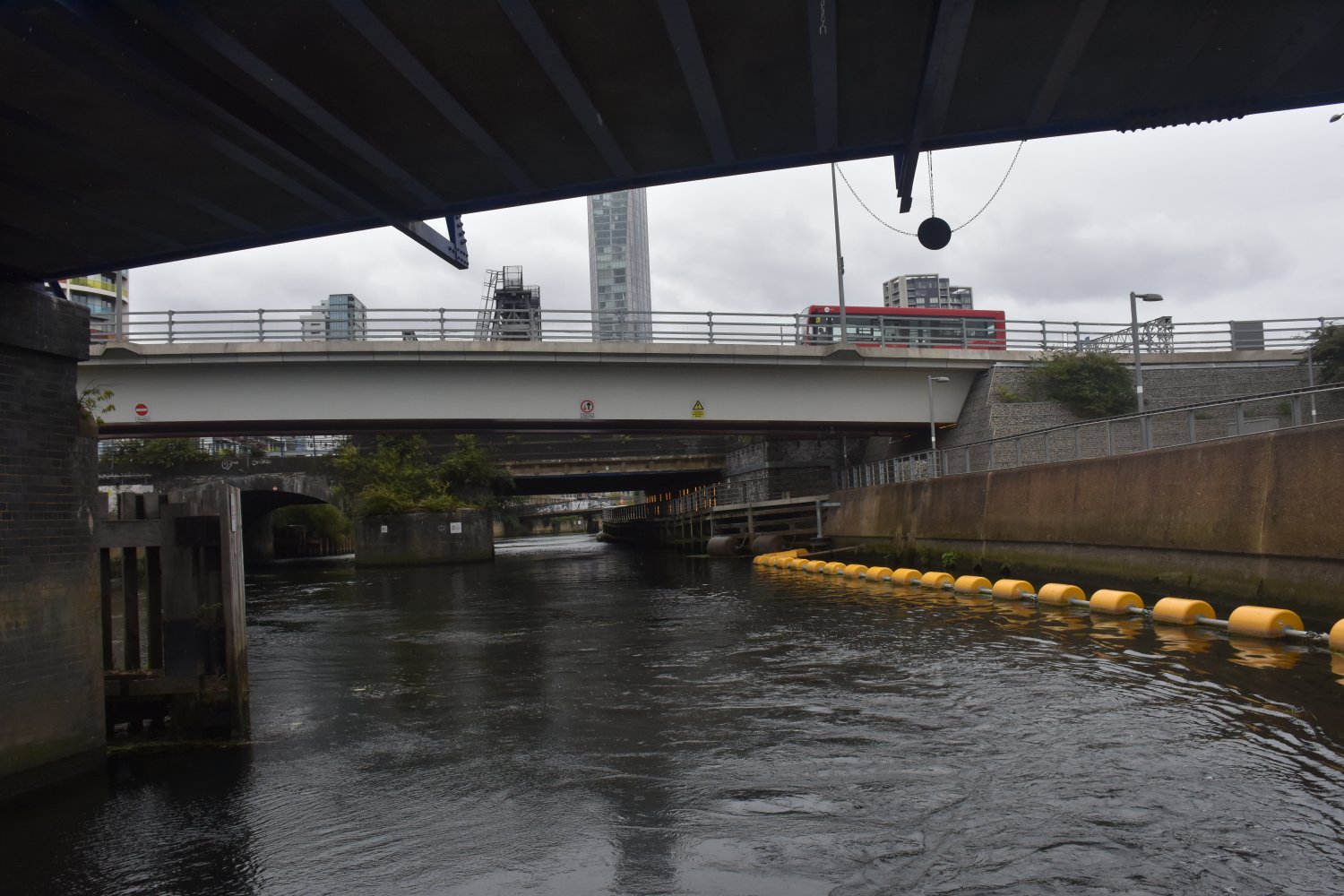 Exiting Bow Lock onto the tidal Bow Creek. Note the recent addition of outer