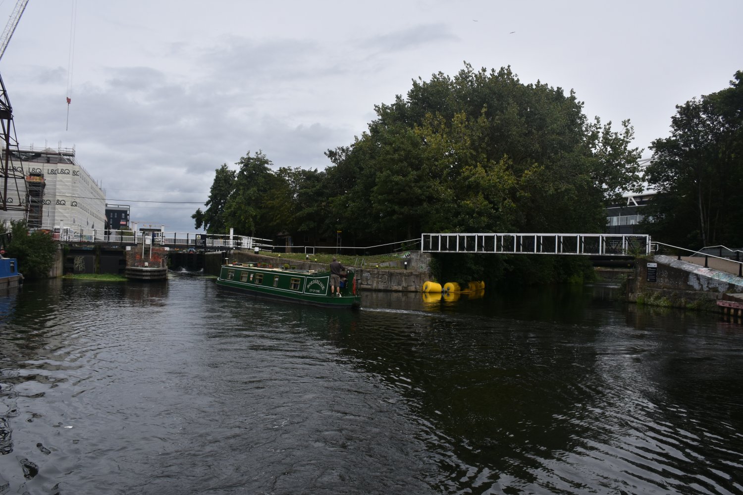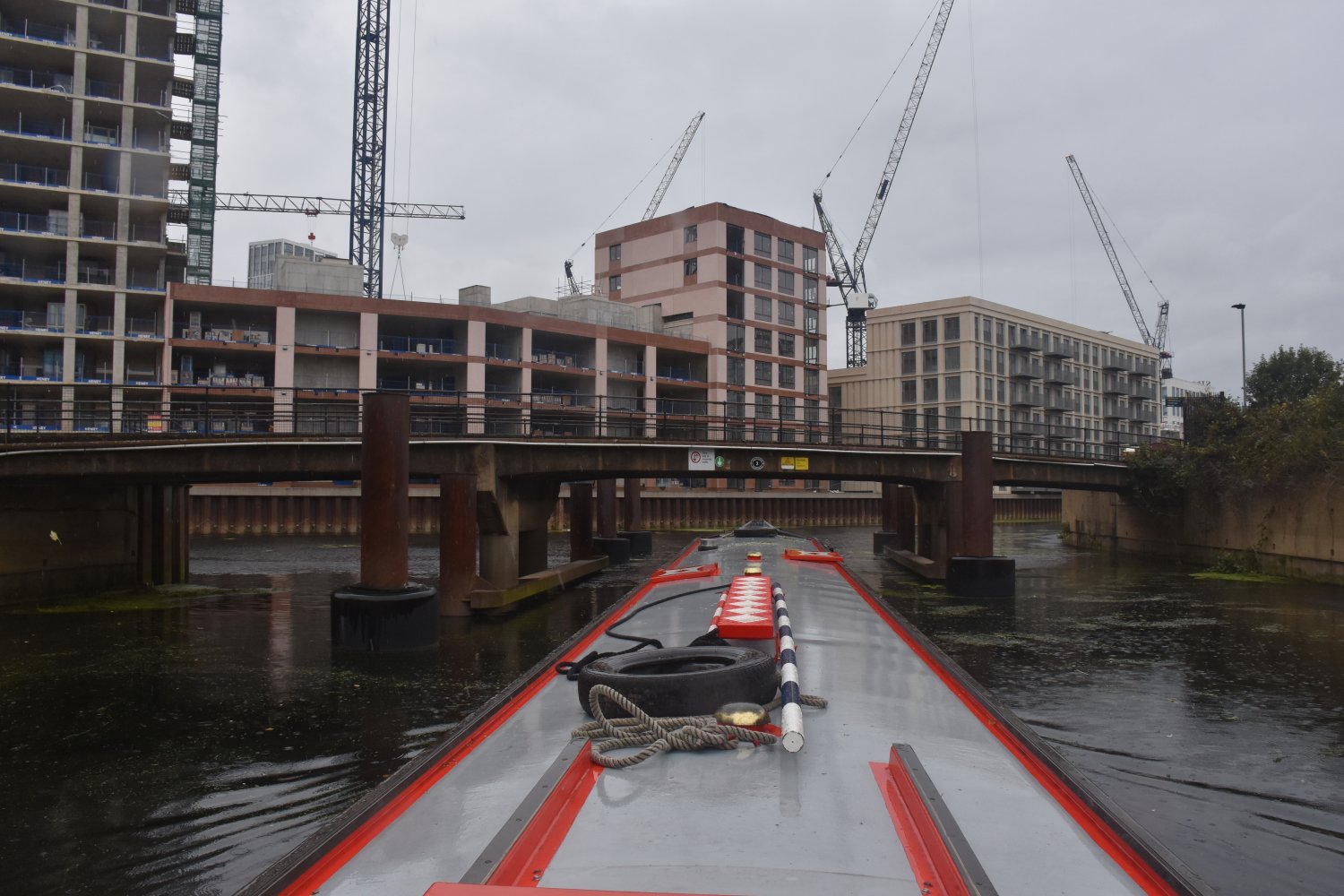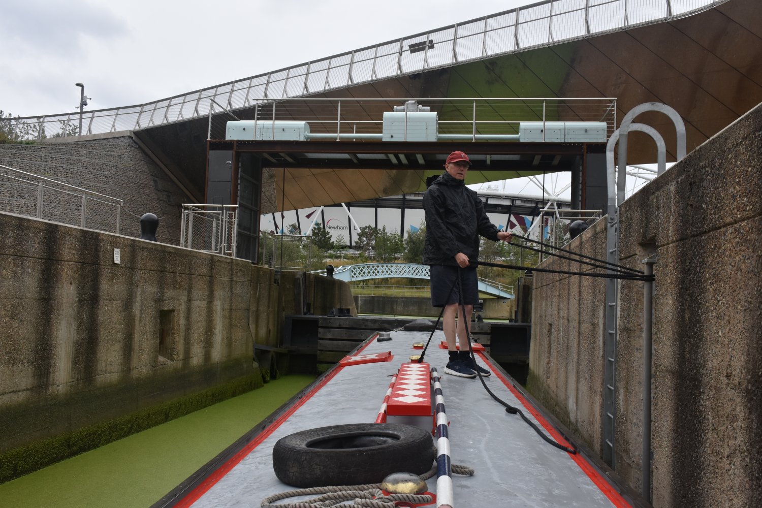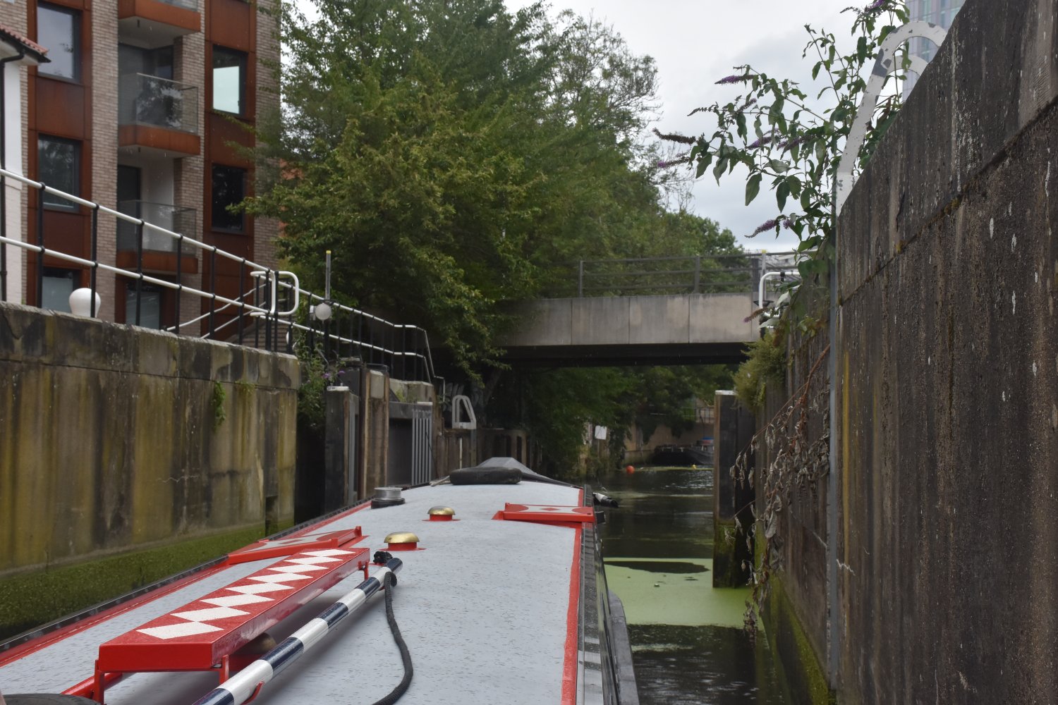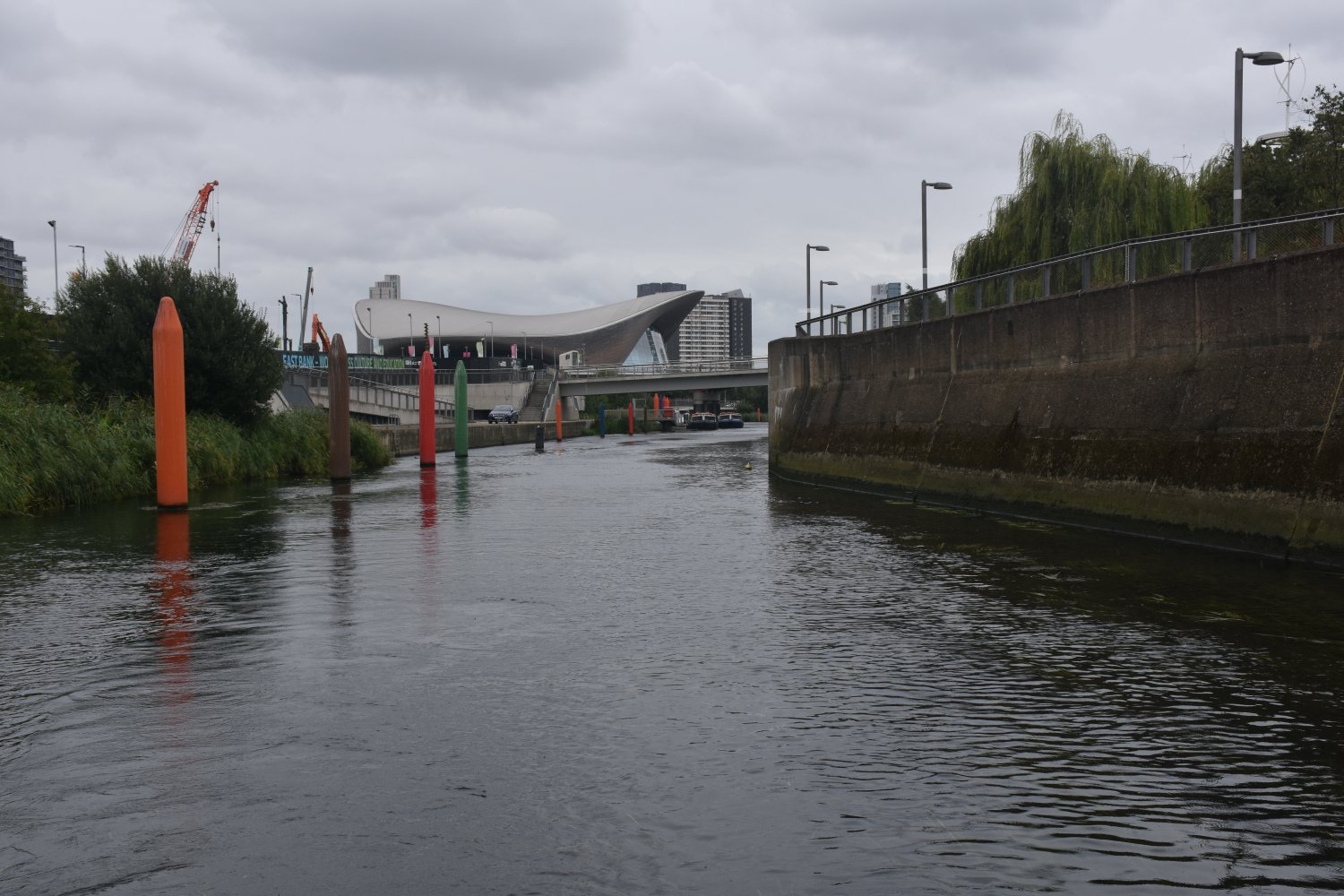 Exiting Bow Lock onto the tidal Bow Creek. Note the recent addition of outer