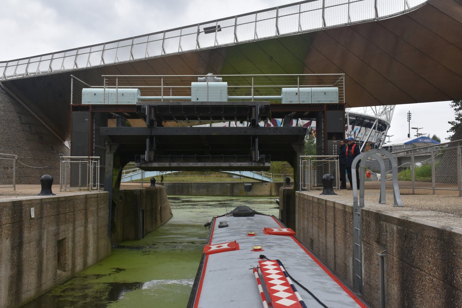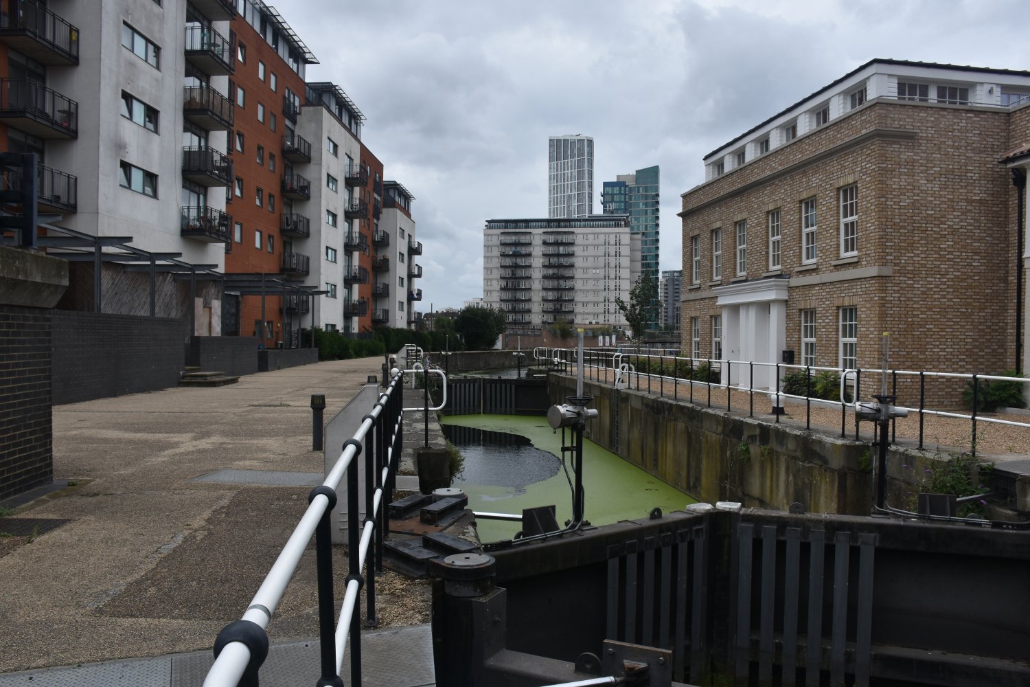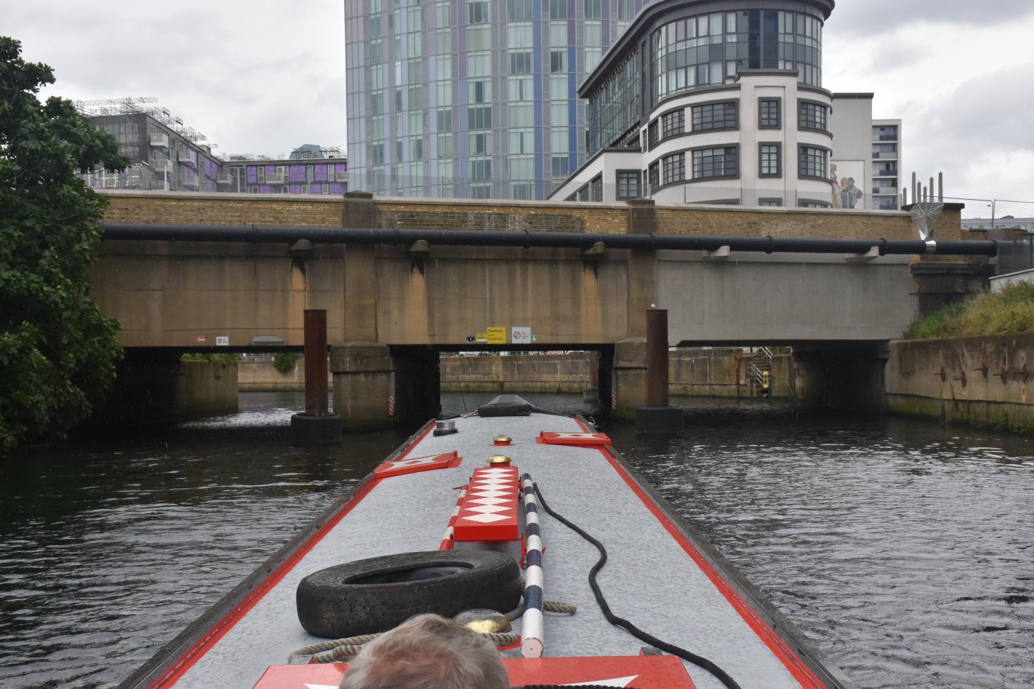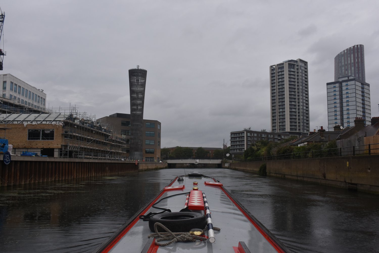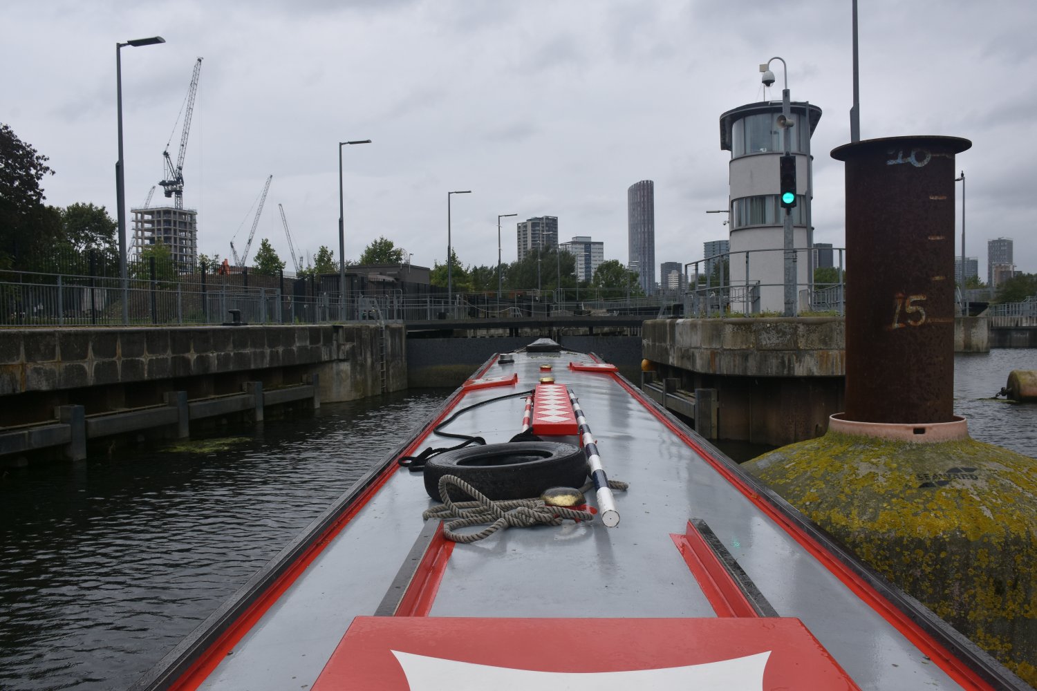 Exiting Bow Lock onto the tidal Bow Creek. Note the recent addition of outer
